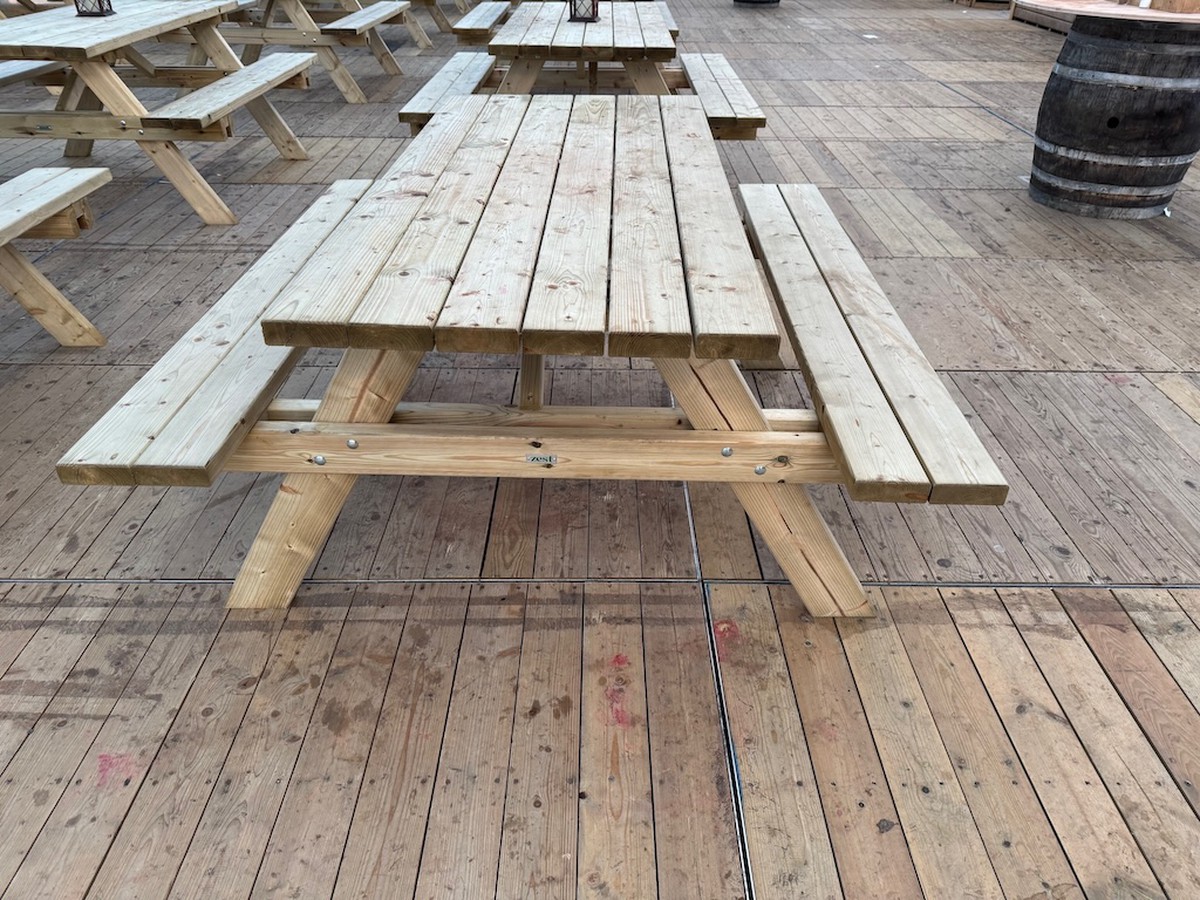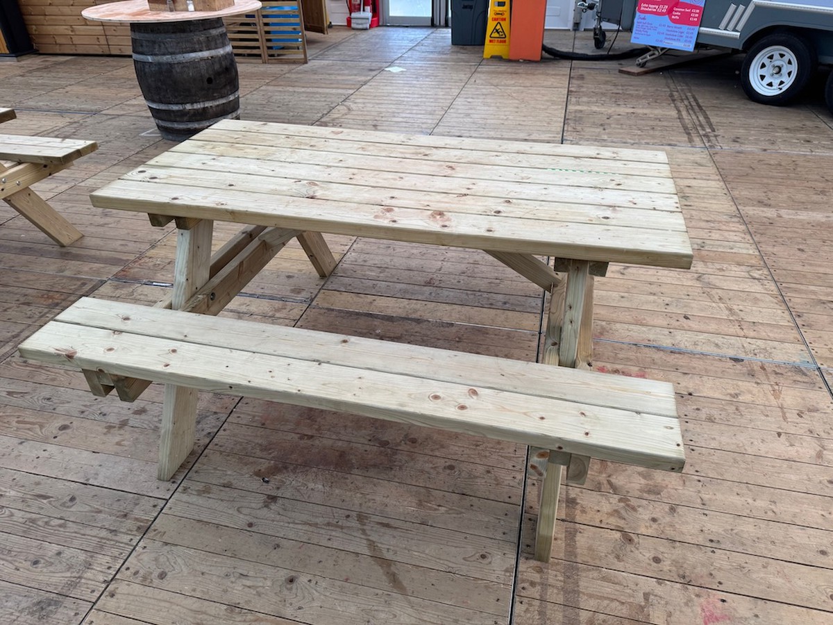 Picnic Benches that were only built in November and used in our Winter Market over Christmas. All are in excellent condition as they have only been used for 6 weeks and have been under cover, some may have some drink spill marks but all can be lightly sanded out.Click here for more products from this seller