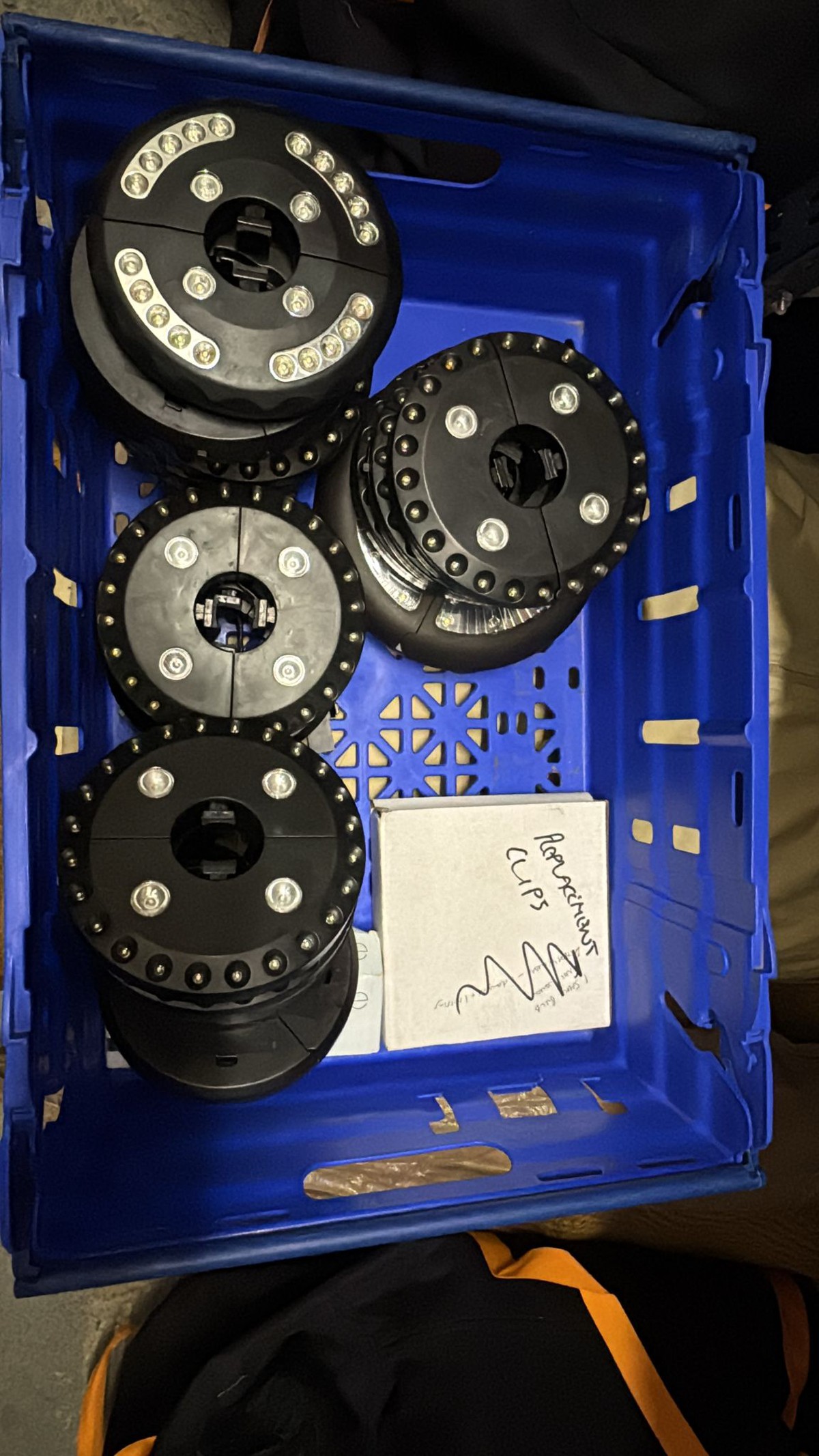 18 x centre pole lights for bell tents. On/off switch, different light settings.With replacement clips and some battery’s.