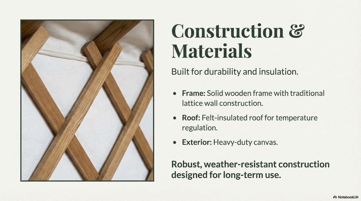 Constructed using traditional materials and modern finishing, this yurt creates an atmosphere that feels both grounded and premium.
