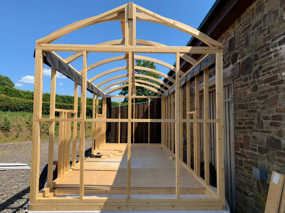 Beautiful, self-build 20ft x 8ft Shepherds Hut.Crafted with care, this hut features a sturdy, steel chassis and treated timber frame, together with arched roof that can withstand any weather condition.