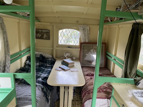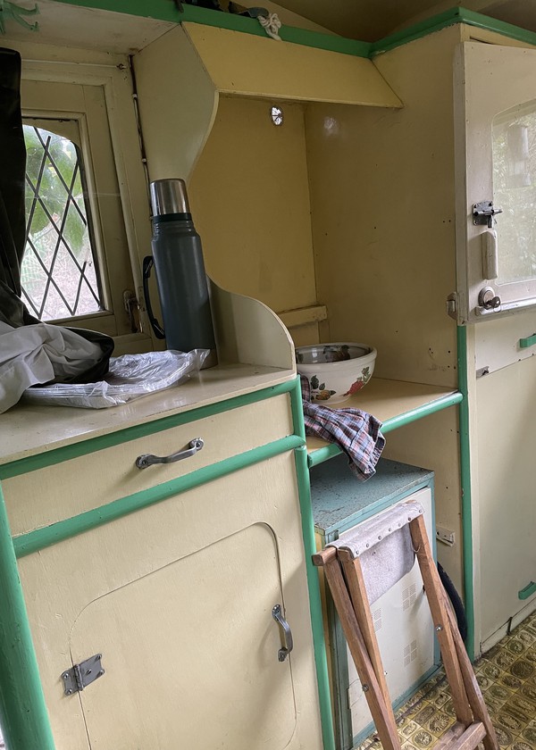 1930's makers unknown touring caravan.Moveable on wheels but not suitable for roads. Ideal garden hideaway.
